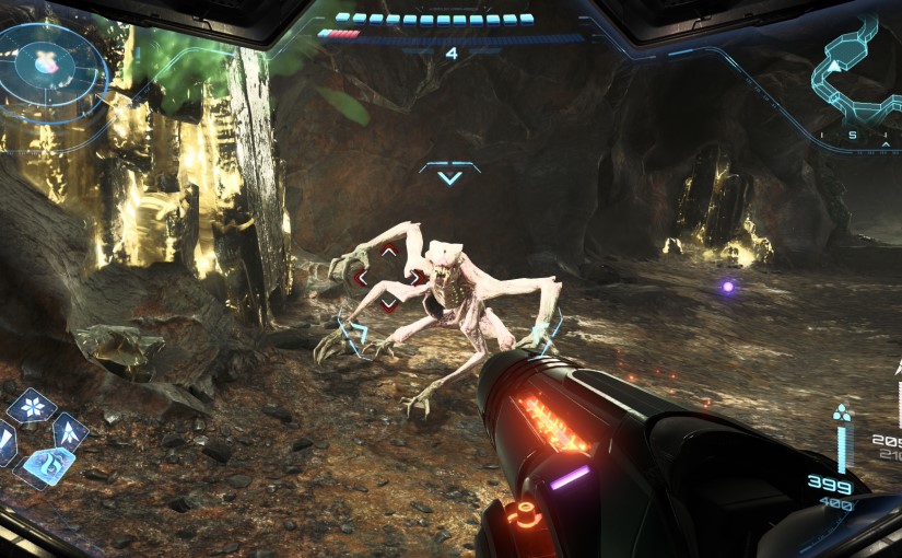 The Catacombs had a nice atmosphere, and by that I mean a dark, dreary, and unsettling atmosphere with spooky music, dark, scary holes everywhere, and gross matter stuck to the walls and floors with egg sack-like things scattered about. It’s so dark that a fiery eye creature had to accompany us to light the way.