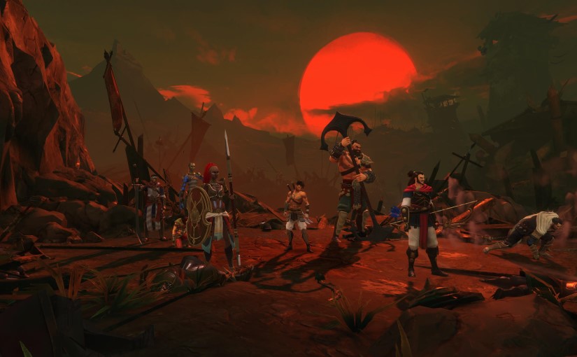 We then got a quick origin cutscene of Sargon meeting the Immortals, looking all frazzled and scrawny, with glowing blue eyes. He wanted to fight Vahram and, though he lost, Vahram welcomed him into the ranks of the Immortals. What’s going on there, then? I made a note here that the archer, who I’ve been calling Bard, is actually called Menolias. He still looks like Bard, though.